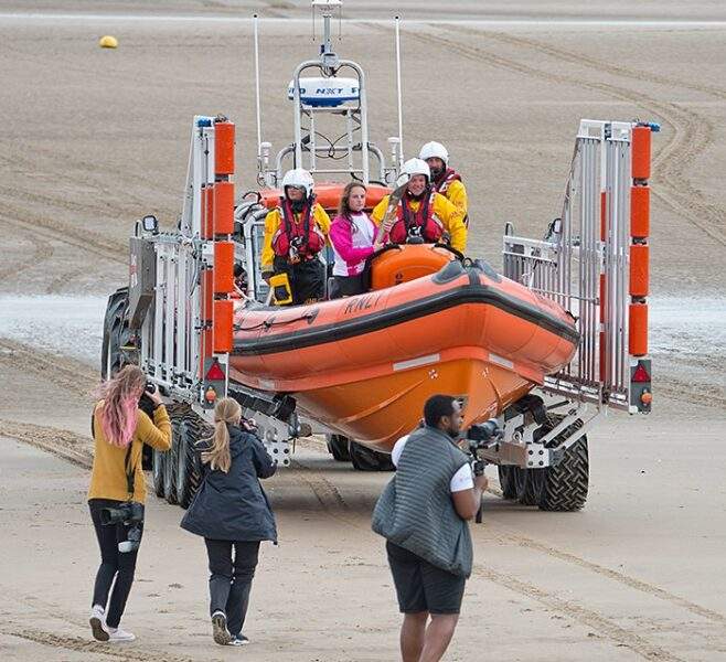 The boat proceeded to the RNLI station at Burry Port where the baton was handed over to a relay team to run along the Millennium Coast Path to North Dock in Llanelli.