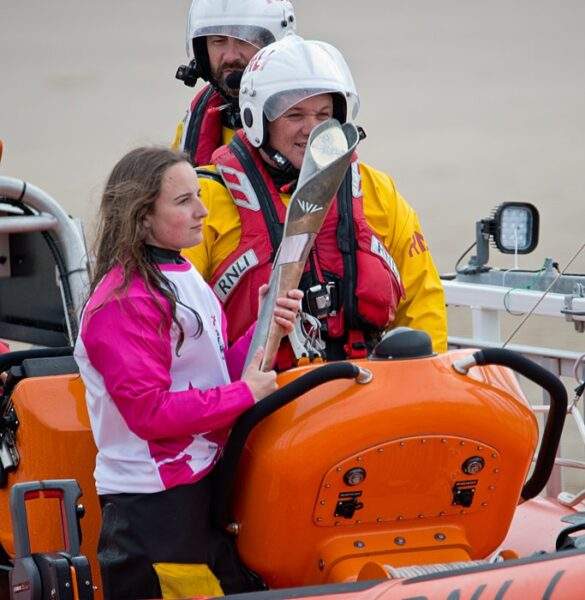 The baton was then taken by bicycle to the beach at Pembrey where a wheelchair competitor relayed it to a waiting RNLI boat.