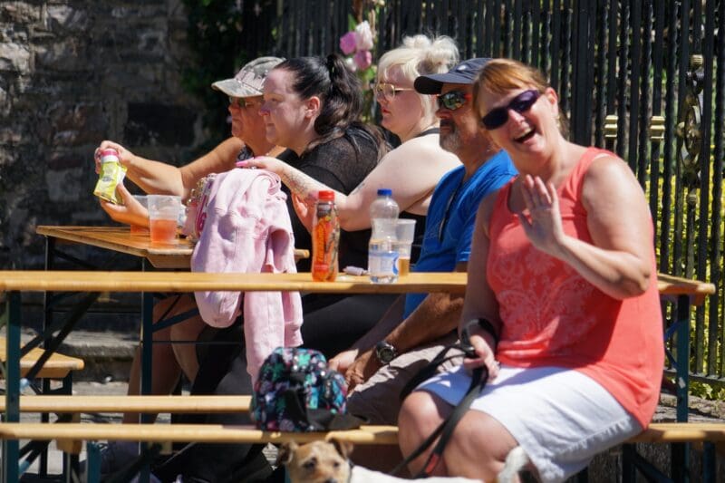 Businesses throughout the town opened their doors and no doubt did a roaring trade judging by the large numbers of people who appeared from nowhere on this blazingly hot Saturday afternoon. The town had already been yarn bombed with knitted flowers wrapped around street furniture. Hanging baskets were in full bloom and houses and shops looked as if Mr Sheen (not Michael) and the Shake and Vac lady had been in town all week.