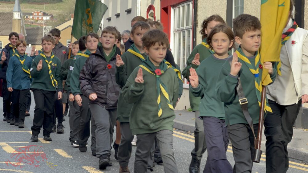 On one of the warmest November days one can remember the young and the older made their way to the church, the War Memorial or to line the streets as those who served and who are serving marched from Lady Street joined by local children in cubs, scouts and guides uniforms.